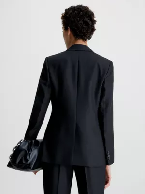Ce blazer est réalisé à 70 % en polyester recyclé certifié.