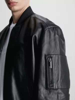 Ce bomber est entiĂšrement confectionnĂ© en cuir d’agneau Napa vĂ©ritable.