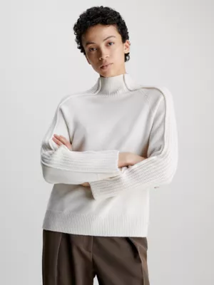 Ce pull est confectionné à 100 % à partir de laine recyclée certifiée, à l’exception des bordures.