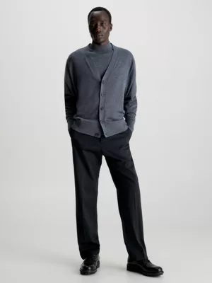 Ce pull cardigan est confectionné à 100 % en laine mérinos certifiée issue de sources responsables, à l’exception des bordures.