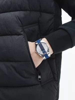 • bracelet : acier inoxydable, caoutchouc bleu